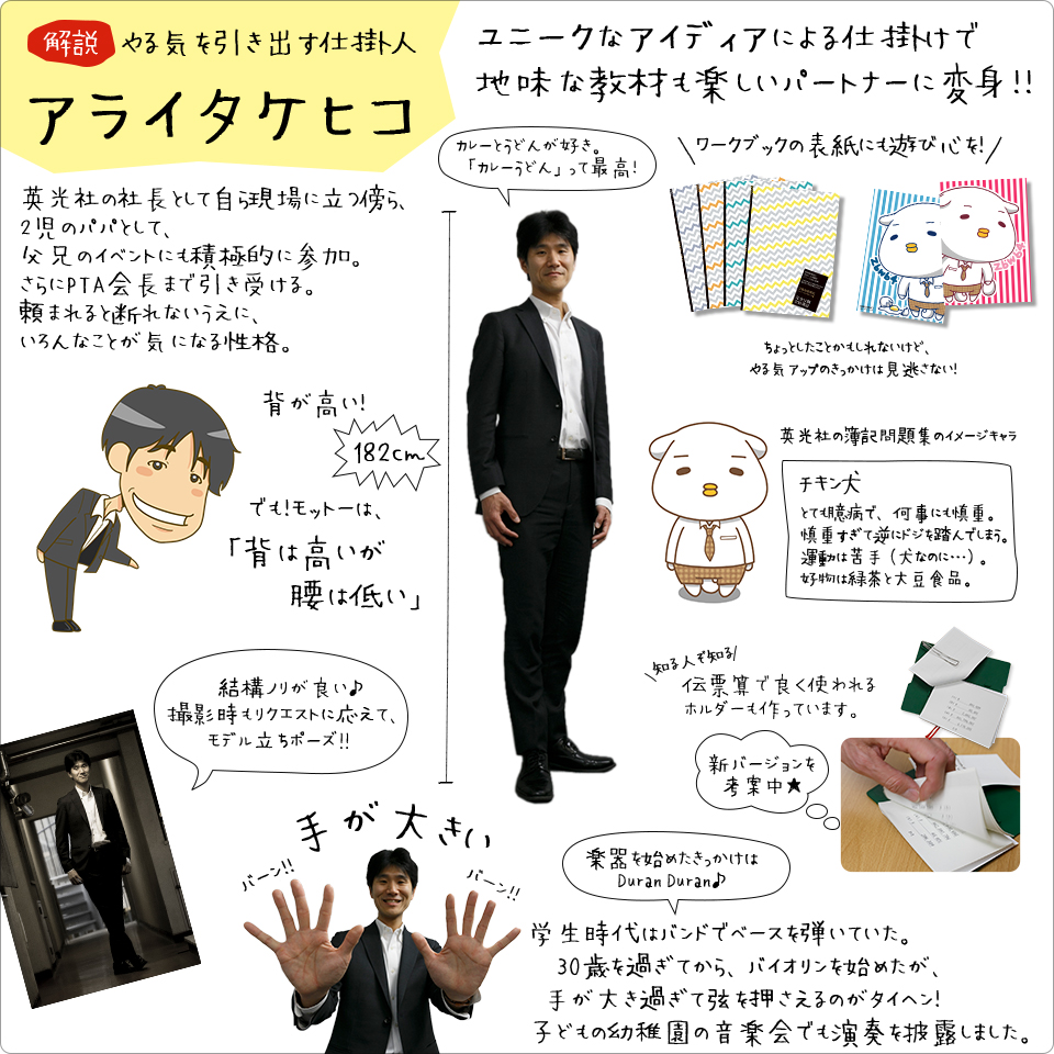 だから、先生方に直接お会いして現場の声をうかがい、教材作りに取り入れています。用途やシチュエーションに合わせて、教科書にはない要素を盛り込むなど、より楽しく学習できるオリジナルな問題集を作っています。